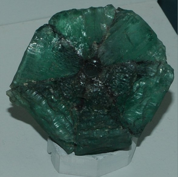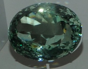 This green beryl gem is 577.9 caras and is from Teofilo Otoni, Minas Gerais, Brazil. It is about 10 cm across.