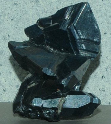 This sample of bournonite is displayed in the Smithsonian Museum of Natural History. Bournonite is an sulfide mineral of copper, antimony and lead with the composition CuPbSbS3 . This sample is about 4x4 cm and is from Noche Buena, Zacatecas, Mexico. This sample also contains Jamesonite.