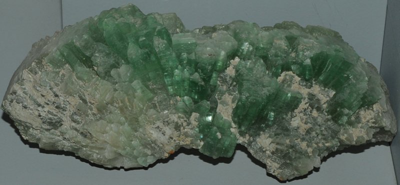 Brucite![]() Brucite is a hydroxide of magnesium with the composition Mg(OH)2 . This sample is about 14x7 cm and is from the Ethel Mine, Mtoroshanga, Zimbabwe. These samples of Brucite are displayed in the Smithsonian Museum of Natural History.