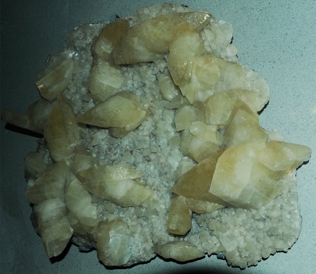 This large sample of calcite is from the Woodchuck mine in Bisbee, Arizona. The sample size is about 60x50 cm.