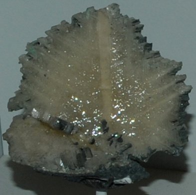 This is an example of twinned crystals of cerussite. The sample is about 20 cm wide and is from Tsumeb, Namibia. .
