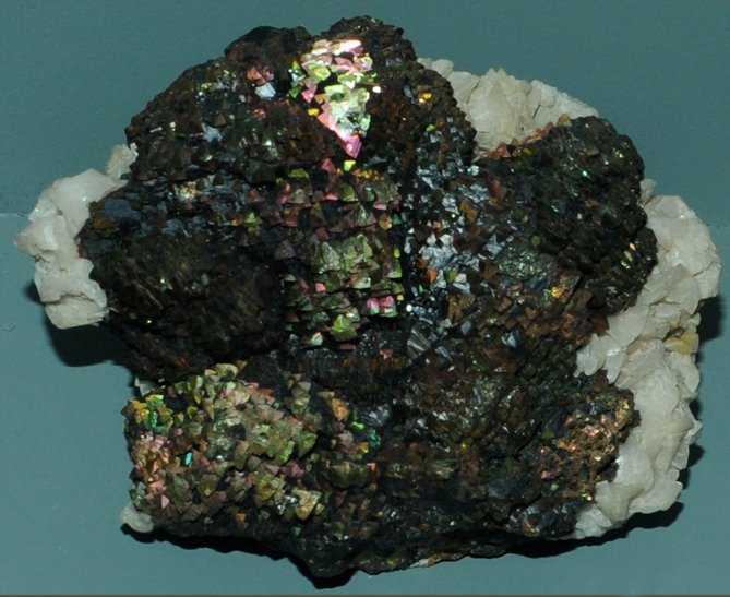 This sample of chalcopyrite with calcite is from Santa Rita, New Mexico. It is about 14 cm across.