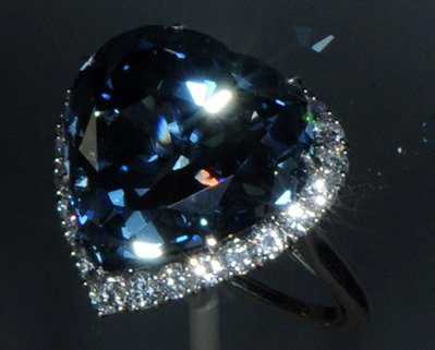 The Blue Heart Diamond Ring has an extraordinary 30.62 carat blue diamond from South Africa. It is two thirds the size of the Hope Diamond.