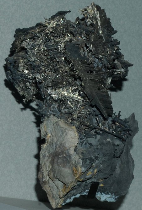 This sample of dyscrasite is displayed in the Smithsonian Museum of Natural History. Dyscrasite is a compound of silver and antimony with the composition Ag3Sb . This sample is about 8x16 cm and is from Pribram, Cechy, Czech Republic . This sample also contains stibarsen.