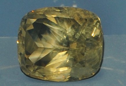 The carved figure at left is labeled 810.7 carats. It is from Labrador, Newfoundland, Canada.
