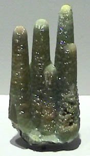 This sample of at left above is about 4x10 cm and has the appearance of stalagmites. The green sample on the right is about 11x13 cm in size.