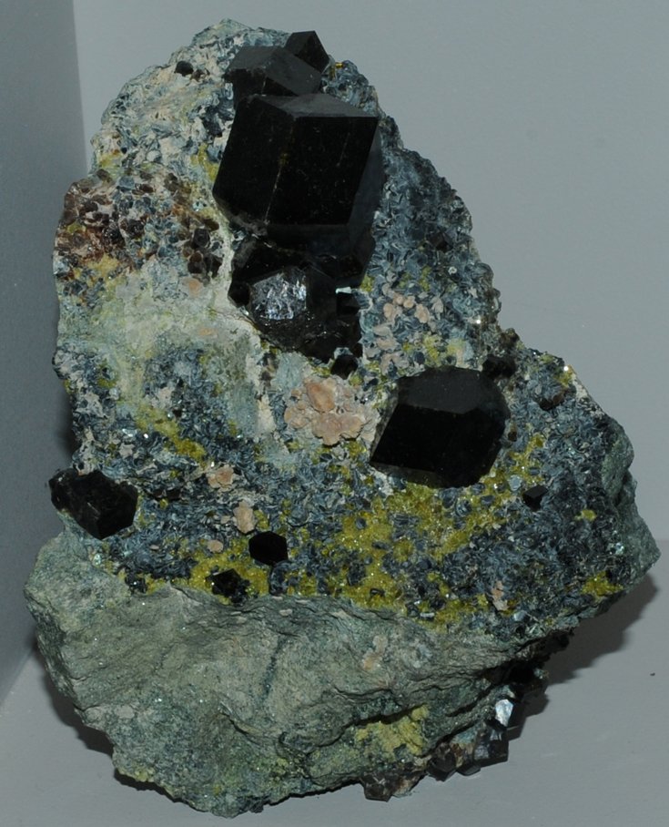 This sample is described as andradite with clinochlore and epidote. It is about 6x9 cm and is from Marquakhel, Spinnatigga, Parchines, Pakistan.