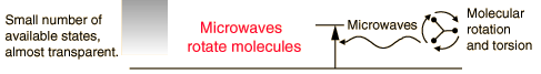 Microwave InteractionsThe quantum energy of microwave photons is in the range 0.00001 to 0.001 eV which is in the range of energies separating the quantum states of molecular rotation and torsion. The interaction of microwaves with matter other than metallic conductors will be to rotate molecules and produce heat as result of that molecular motion. Conductors will strongly absorb microwaves and any lower frequencies because they will cause electric currents which will heat the material. Most matter, including the human body, is largely transparent to microwaves. High intensity microwaves, as in a microwave oven where they pass back and forth through the food millions of times, will heat the material by producing molecular rotations and torsions. Since the quantum energies are a million times lower than those of x-rays, they cannot produce ionization and the characteristic types of radiation damage associated with ionizing radiation. ![]() Interaction of radiation with matter |