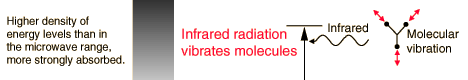Infrared InteractionsThe quantum energy of infrared photons is in the range 0.001 to 1.7 eV which is in the range of energies separating the quantum states of molecular vibrations. Infrared is absorbed more strongly than microwaves, but less strongly than visible light. The result of infrared absorption is heating of the tissue since it increases molecular vibrational activity. Infrared radiation does penetrate the skin further than visible light and can thus be used for photographic imaging of subcutaneous blood vessels. ![]() Interaction of radiation with matter |