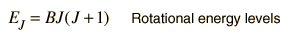 It is customary to define a rotational constant B for the molecule ![]() so that the solutions for the energy states of a rigid rotator can be expressed as ![]() In this context, the association M=MJ is made and the projections of the rotational angular momentum along the polar axis (z-axis) can be expressed as ![]() The rotational energy levels are normally degenerate with respect to MJ, but when there are perturbing influences like the application of an electric field (Stark effect), the levels are split into energy levels which depend upon MJ . For a general rigid rotor with rotations about three principal axes, the energy can be expressed in terms of three rotational constants A, B, C, but the expressions for the energies become more complex. As an example, see the expressions for some lower energy states of the molecule SPF2H.