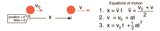 Linear Motion ExplorerThese motion equations apply only in the case of constant acceleration. It is assumed that x=0 at t=0 and that the motion is being examined at time t. After you have edited any box of motion data, click on the text or symbol for the quantity you wish to calculate. If it does not behave the way you expect, see the comments on the calculation. |