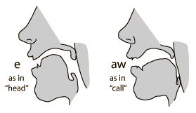 Forming the Vowel SoundsThe vocal resonances are altered by the articulators to form distinguishable vowel sounds. The peaks in the vowel spectra are called vocal formants. Note the prominent role of the tongue in this process. The jaw position and lips also play a major part. ![]() The sketches at left above are adapted from Gunnar Fant's "Acoustic theory of speech production" and are reportedly sketches taken from x-rays of the head during the production of these sounds. These are the vowels classified as IPA [a], [i], and [u] and roughly correlate with the vowels represented in the spectra from Benade. The emphasis should be on "roughly" since I don't know how close the correlation is. The intent here is to illustrate the role of the articulators and to point to the fact that their action has a major influence on the harmonic content of the voiced sounds. The normal ear is able to clearly distinguish those differences.