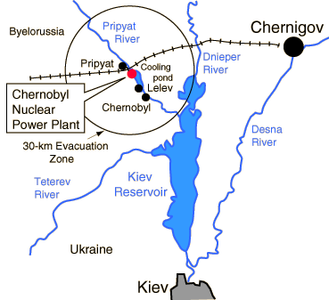 ChernobylOn April 26, 1986, a major explosion occurred at one of the four RBMK-1000 graphite-moderated power reactors at Chernobyl, 80 miles north of Kiev in USSR. ![]() |