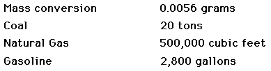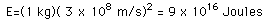 Energy a la EinsteinMass can be converted into energy with a yield governed by the Einstein relationship: ![]() where c = the speed of light. The yield from converting one kilogram is ![]() The energy consumption for one U.S. citizen for one year is about