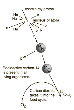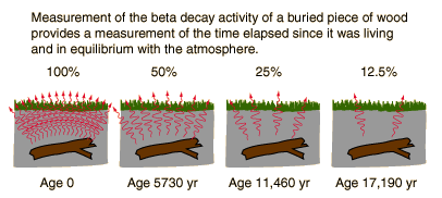 Carbon-14 Equilibrium ActivitySince living organisms continually exchange carbon with the atmosphere in the form of carbon dioxide, the ratio of C-14 to C-12 approaches that of the atmosphere. ![]() From the known half-life of carbon-14 and the number of carbon atoms in a gram of carbon, you can calculate the number of radioactive decays to be about 15 decays per minute per gram of carbon in a living organism. Radioactive carbon is being created by this process at the rate of about two atoms per second for every square centimeter of the earth's surface." Levin The rate of production of carbon-14 in the atmosphere seems to be fairly constant. Carbon dating of ancient bristlecone pine trees of ages around 6000 years have provided general corroboration of carbon dating and have provided some corrections to the data. |