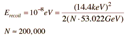 While one atom can emit a photon which is absorbed by the reverse transition in an identical atom a short distance away (resonance fluorescence), the same cannot happen for nuclear transitions from isolated nuclei. The reason is the large recoil energy compared to the natural linewidth of the transition. Using the iron as an example, the 14.4 keV gamma ray has momentum pc=14.4 keV. The recoil momentum of the emitting iron nucleus must match that if it acts as an isolated particle. The recoil energy can be calculated from the momentum, and it is usually convenient in such cases to put everything in electron volts. ![]() The energy of recoil of the iron-57 nucleus is