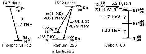 Radioactive Decay PathsRadioactivity involves the emission of particles from the nuclei. In the case of gamma emission, the nucleus remaining will be of the same chemical element, but for alpha, beta, and other radioactive processes, the nucleus will be transmuted into the nucleus of another chemical element. Each decay path will have a characteristic half-life, but some radioisotopes have more than one competing decay path. ![]() |
