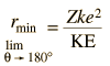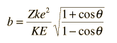The default calculation above will be the calculation of the impact parameter b and the radius of closest approach. However, if you substitute a number for the radius of closest approach, it will calculate the kinetic energy necessary to produce that value, given the angle and other parameters.