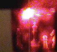 Holography![]() The above image was taken through a transmission hologram. The hologram was illuminated from behind by a helium-neon laser which has been passed through a diverging lens to spread the beam over the hologram. Holography is "lensless photography" in which an image is captured not as an image focused on film, but as an interference pattern at the film. Typically, coherent light from a laser is reflected from an object and combined at the film with light from a