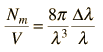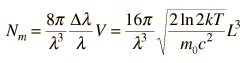 Number of Modes in a Gas Laser CavityThough a laser is said to be monochromatic and may involve only one atomic transition to produce the laser light, there are nevertheless a number of cavity modes within the width of that spectral line. Under the operating conditions of gas lasers, the Doppler broadening of the spectral line is the main source of linewidth. In terms of angular frequency, the Doppler linewidth is given by ![]() Within that linewidth, the number of modes may be obtained from the photon density of states expression. ![]() Combining these expressions gives a relationship for the number of modes. ![]() The number of modes is one of the factors which determines the necessary pumping power to operate the laser. |
