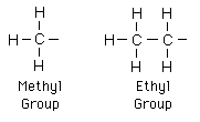 Alkyl GroupsIf a hydrogen is removed from an alkane, it can be used as a substituent functional group called an alkyl group. Alkyl groups are named by dropping the -ane suffix of the alkanes and adding the suffix -yl. Methane becomes a methyl group, ethane an ethyl group, etc.
