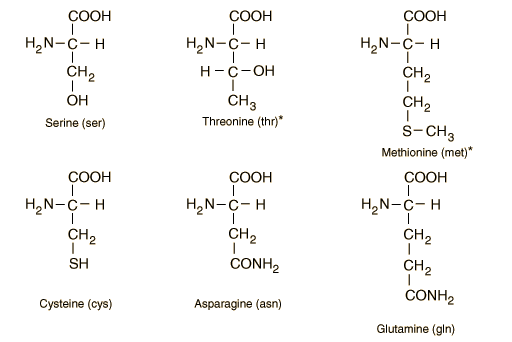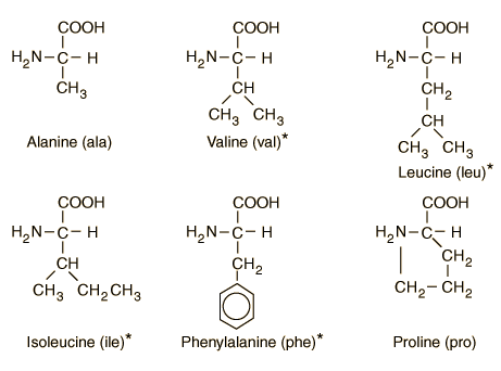 ![]() * Amino acids which are essential amino acids which cannot be made by the human body and, therefore, must be obtained in the diet. |