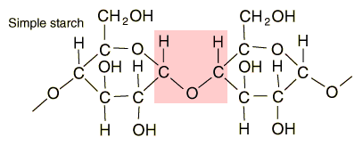 StarchesStarches are carbohydrates in which 300 to 1000 glucose units join together. It is a polysaccharide which plants use to store energy for later use. Starch forms in grains with an insoluble outer layer which remain in the cell where it is formed until the energy is needed. Then it can be broken down into soluble glucose units. Starches are smaller than cellulose units, and can be more readily used for energy. In animals, the equivalent of starches is glycogen, which can be stored in the muscles or in the liver for later use. ![]() Foods such as potatoes, rice, corn and wheat contain starch granules which are important energy sources for humans. The human digestive process breaks down the starches into glucose units with the aid of enzymes, and those glucose molecules can circulate in the blood stream as an energy source. Tillery, et al. point out an interesting example of this enzyme-catalyzed breakdown process. If you chew on a piece of bread for a while, it will begin to taste sweet because the enzymes in saliva are already beginning to break down the starch into glucose, a sugar.