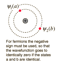 The nature of the Pauli exclusion principle can be illustrated by supposing that electrons 1 and 2 are in states a and b respectively. The wavefunction for the two electron system would be