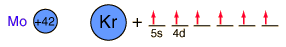 Molybdenum is an exception to the general order of filling of electron orbitals like chromium in the previous period of the same column of the periodic table. It fills five 4d states before it fills the second 5s state. Just those levels outside a krypton core are shown.