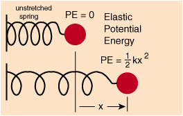 Elastic potential energy is Potential energy stored as a result of deformation of an elastic object, such as the stretching of a spring. It is equal to the work done to stretch the spring, which depends upon the spring constant k as well as the distance stretched. According to Hooke's law, the force required to stretch the spring will be directly proportional to the amount of stretch.