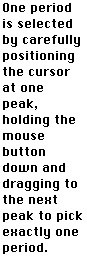 Sound Analysis IIMacScope Fast Fourier TransformPhysics 4060: Acoustics LaboratoryAs another approach to sound analysis, the three pre-recorded tones from the previous will be analyzed using the MacScope digital sampling interface and the accompanying Fast Fourier Transform analysis software. The MacScope will be used at its fastest rate, a 20ms sampling time which corresponds to 50 kHz sampling rate. For comparison, the A/D samplers for the production of audio compact discs usually operate at a 44 kHz rate. Play the tape of your sounds through the Peavy sound board and connect the Monitor output to the oscilloscope. Adjust the Monitor level (blue knob on right of console) so that the peak-to-peak voltage is about 2 volts. Branch the monitor output so that you can also connect it to input #3 of the Macscope. If the Macscope software is not running, start it by double-clicking on the Macscope icon on the screen. It takes a minute or so for the software to load. Adjust the Amp to 2 by using the mouse and the pull-down menu at the top of the screen. Examine the Input menu and make sure #3 is selected. The Time menu should be set to Trigger and Automatic , which will set it to the maximum time resolution of 20 _s. In this configuration, the analog-to-digital converter will collect about 70 milliseconds of data, enough for several periods of your sound waveform. To collect data, play the tape and listen for the desired sound. When it starts, click the Stop/Go button on the screen with the mouse. It will display "GOING" below the button and collect data until the data buffer is full. When it is finished, it will display "STOPPED". After examining the display to make sure than you have captured a sample, save the data file on an external floppy disc with a name which indicates the person and the sound, like JimFlute or JohnAh. For each of your three sounds, the assignment involves displaying the waveform and doing an FFT analysis as illustrated in Figure 1 below. The controls you have at your disposal to do this analysis are illustrated in Figure 2. After examining the data file, adjust the controls so that one waveform fills at least two-thirds of the screen horizontally so that you have sufficient resolution to accurately select one period of the sound. Carefully position the cursor at one recognizable peak and hold down the mouse button and drag the corner of the dashed rectangle which appears to the corresponding peak one period later. Before releasing the mouse button at the next peak, note the measured frequency which is displayed in the information box and make a note of it in your data. When you release the mouse, the period you have chosen will be displayed with a bold line. Now select FFT from the Analyze menu and expand the resulting bar graph as much as possible horizontally using the Expand button. At this point you should save the image of the waveform and FFT analysis you have done for your report. This can be done by holding down the Command and Shift keys simultaneously and pressing 3. This stores the screen as a "paint" document named Picture 0, Picture 1, Picture 2, etc. It will be a good idea to bring this saved file up on the screen using Deskpaint under the Apple Menu or Microsoft Word so that you can save it with a more descriptive title. You need to produce a print of this file for your report.