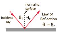 Fermat's Principle: Light follows the path of least time. The law of reflection can be derived from this principle as follows: