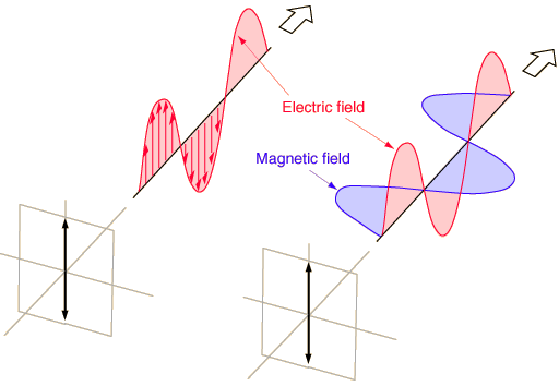 Linear PolarizationA plane electromagnetic wave is said to be linearly polarized. The transverse electric field wave is accompanied by a magnetic field wave as illustrated. ![]()