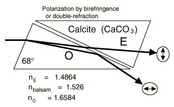 Nicol PrismPolarization can be achieved with crystalline materials which have a different index of refraction in different crystal planes. Such materials are said to be birefringent or doubly refracting.