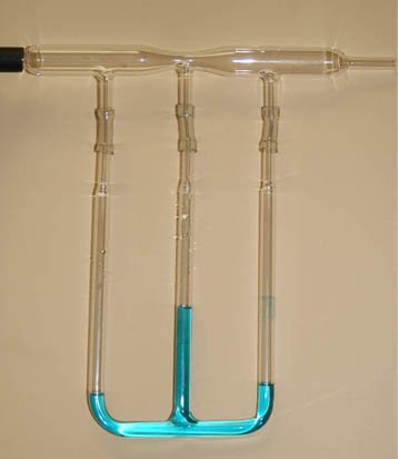 Fluid Pressure MeasurementSince static fluid pressure is determined by the fluid density and depth, the depth or height difference of a given liquid is commonly used for pressure measurement: ![]()