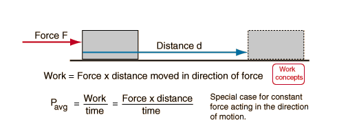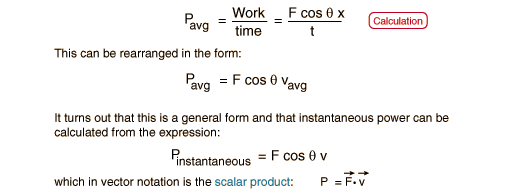 Power may be defined as the rate of doing work or the rate of using energy. These two definitions are equivalent since one unit of energy must be used to do one unit of work. Often it is convenient to calculate the average power.