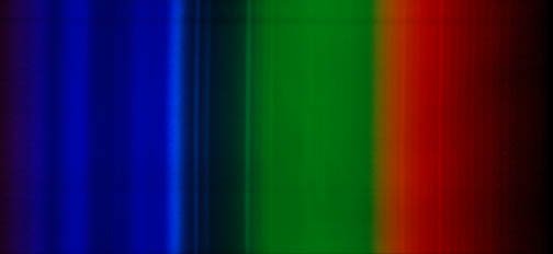 The iodine spectrum spreads throughout the visible colors with multiple bands that are barely resolvable at this resolution. ![]() |