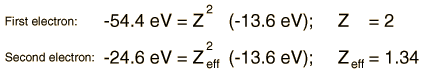 - If the electrons are on the average further apart, then there will be less shielding of the nucleus by the ground state electron, and the excited state electron will therefore be more exposed to the nucleus. This implies that it will be more tightly bound and of lower energy.