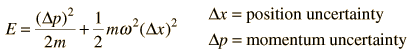 Quantum Harmonic Oscillator: Energy Minimum from Uncertainty PrincipleThe ground state energy for the quantum harmonic oscillator can be shown to be the minimum energy allowed by the uncertainty principle. The energy of the quantum harmonic oscillator must be at least ![]() Taking the lower limit from the uncertainty principle ![]() Then the energy expressed in terms of the position uncertainty can be written ![]() Minimizing this energy by taking the derivative with respect to the position uncertainty and setting it equal to zero gives ![]() Solving for the position uncertainty gives ![]() Substituting gives the minimum value of energy allowed.