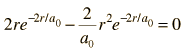 Dropping off the constant terms and taking the derivative with respect to r and setting it equal to zero gives the radius for maximum probability.