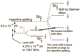 According to the hydrogen Shrodinger equation solution, the energy levels of the hydrogen electron should depend only on the principal quantum number n. In 1951, Willis Lamb discovered that this was not so - that the 2p(1/2) state is slightly lower than the 2s(1/2) state resulting in a slight shift of the corresponding spectral line (the Lamb shift).