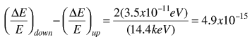 By just using the expression for gravitational potential energy near the Earth, and using the m in the relativistic energy expression, the gain in energy for a photon which falls distance h is ![]() Comparing the energy shifts on the upward and downward paths gives a predicted difference ![]() The measured difference was ![]() The success of this experiment owed much to the care of Pound and Rebka in preparing the source. They electroplated cobalt-57 onto the surface of a thin sheet of iron and then heated the combination at 1220 K for an hour. The heat treatment caused the cobalt to diffuse into the iron to a depth of about 300 nm or 1000 atomic spacings. The source was then mounted on the cone of a loudspeaker driven at 10Hz to sweep the source velocity in a sinusoidal variation. The detector was a thin sheet of iron about 14 micrometers thick which was also annealed. The heat treatments were found to be crucial in obtaining high resolution. |