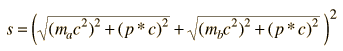 While this gives the form of the necessar transformation, we don't know the values for b and g necessary to achieve the zero-momentum condition. That's where the invariance of the length of the energy-momentum 4-vector is of value. Now evaluating the length of the momentum-energy 4-vector from the experimental information we have in the laboratory frame gives the quantity s above.