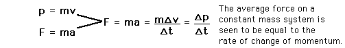 The net external force acting on an object can be evaluated as the rate of change of momentum. This turns out to be a more fundamental way of stating the force than the use of Newton's second law. Using Newton's second law and momentum: