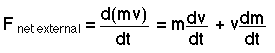 This formulation of the force relationship permits varying mass, as in rocket propulsion. |