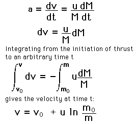 Rocket in SpaceUnder the influence of the rocket thrust in a gravity-free environment, the resulting velocity can be calculated from"