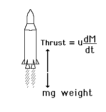 Vertical Rocket Under the influence of the rocket thrust and gravity, the acceleration is
