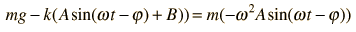 Collecting terms gives B=mg/k, which is just the stretch of the spring by the weight, and the expression for the resonant vibrational frequency: