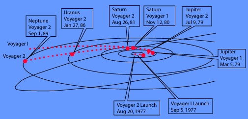 Voyager IVoyager I was launched Sep 5, 1977. It explored Jupiter and its satellites and moved on to explore Saturn and others. Closest approach to Jupiter Mar 5 1979. The signal transit time to Jupiter is about 40 minutes. Its closest approach to Saturn (126,000 km) was on Nov 12, 1980. Our knowledge of the outer planets was enormously increased by Voyager I and Voyager II.