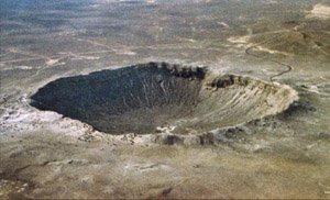 Picture credit D. Roddy, USGS | The meteor responsible for the creation of Meteor Crater or Barringer Crater near Flagstaff, Arizona was given the name Canyon Diablo. Fragments of the meteor have been collected around the crater and in Canyon Diablo which lies 3 to 4 miles west of the crater. |